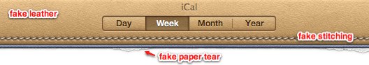 iCal is pretty much the same. They moved some buttons around, hopefully based on usability studies. No problem there. But they made it look cheesy. The top bar looks like leather (really?!) and it has little marks where you see you “tore off” the previous page. Really?! Talk about adding unnecessary cutesy stuff. And cutesy is a matter of taste. So if you add it, you must allow people to customize it. But I haven’t figured out a way to do it, and am not sure it is possible. If it is, I shouldn’t have to spend 20 minutes trying to find it. Right click, baby. Can we still do that? Oh, wait, two finger tap. Why is that wrong about iCal?